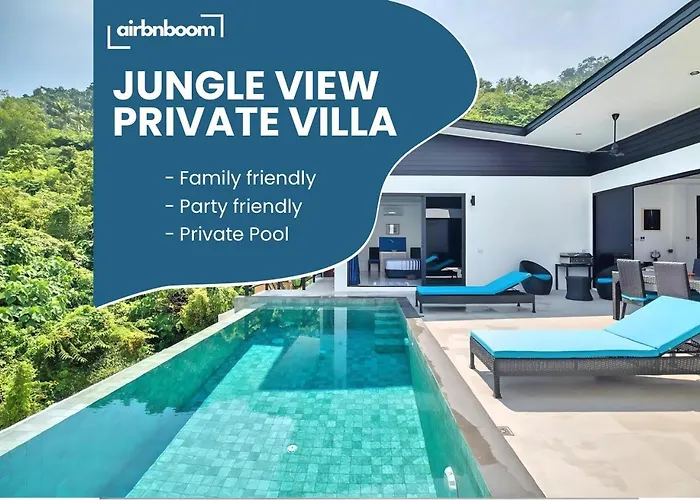 Private Pool Villa - Jungleview - 10 Min To Beach tilbyder en indkvartering inden for 25 minutter i bil fra Ko Samui / Samui o lufthavn. Værelserne i villaen har en sofa, et skrivebord, kaffe- og tefaciliteter.